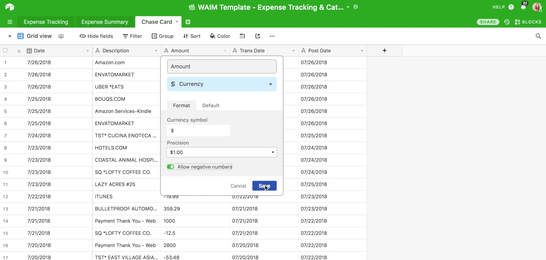 Now you’ll also want to select the correct Field Types for the Date and Currency columns. To do that, double-click on the column header and select each corresponding field type: Date and Currency.