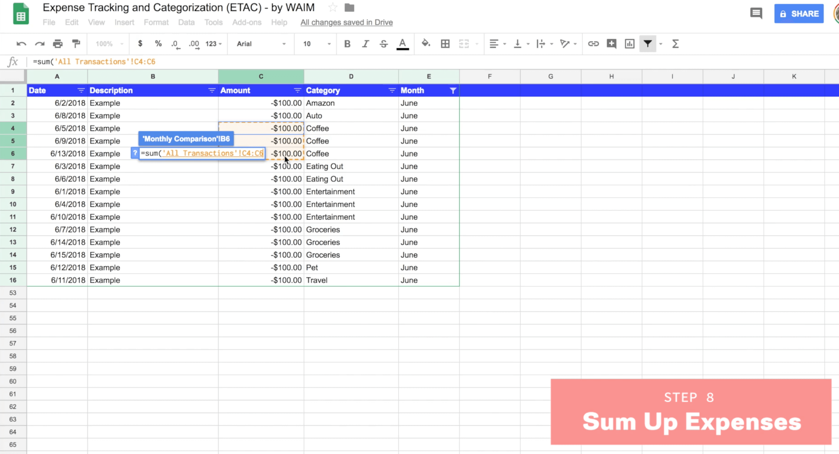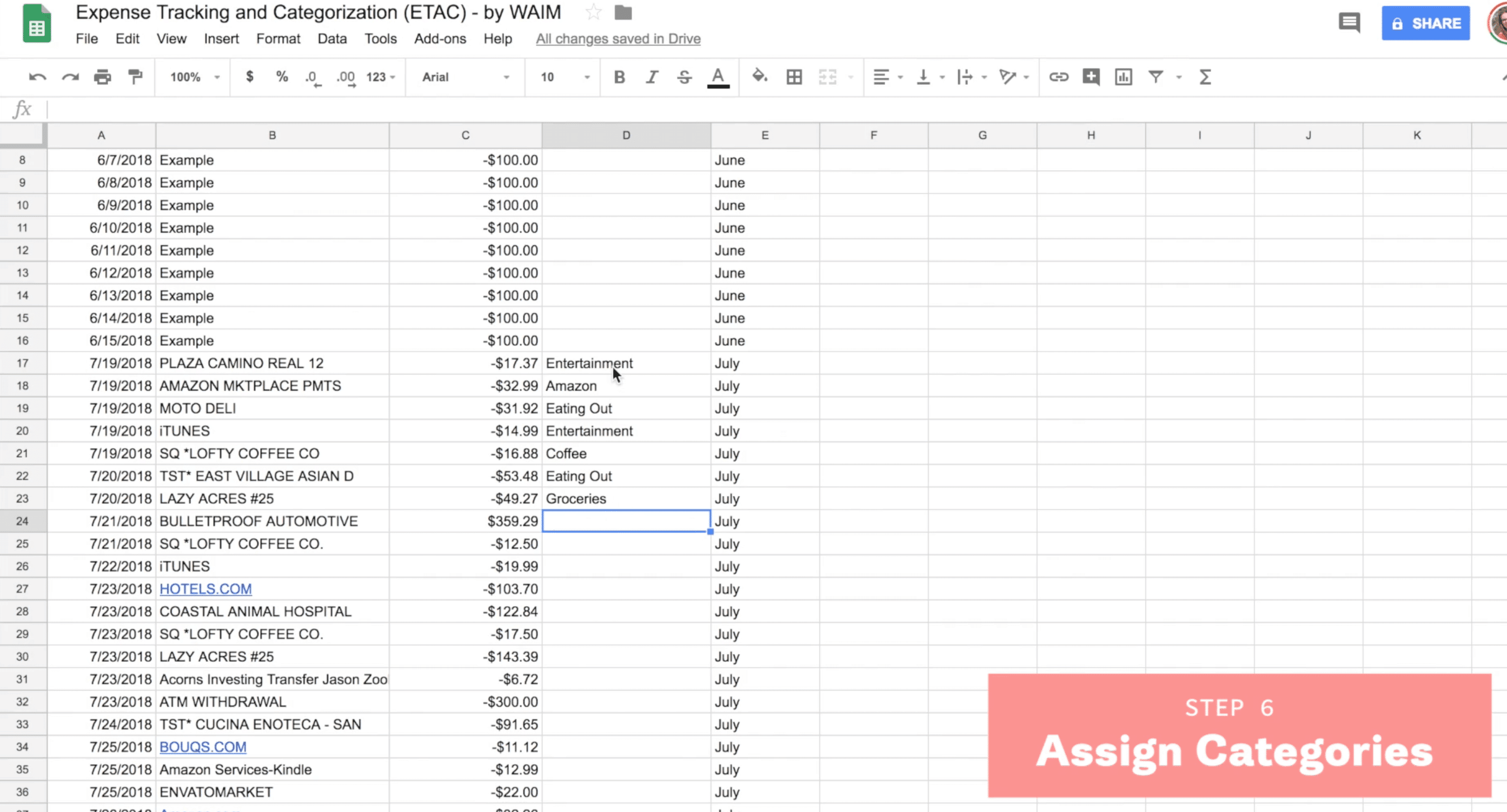This basically alphabetizes your transactions by description, which allows us to easy fill in the Revenue Stream column with the product name.