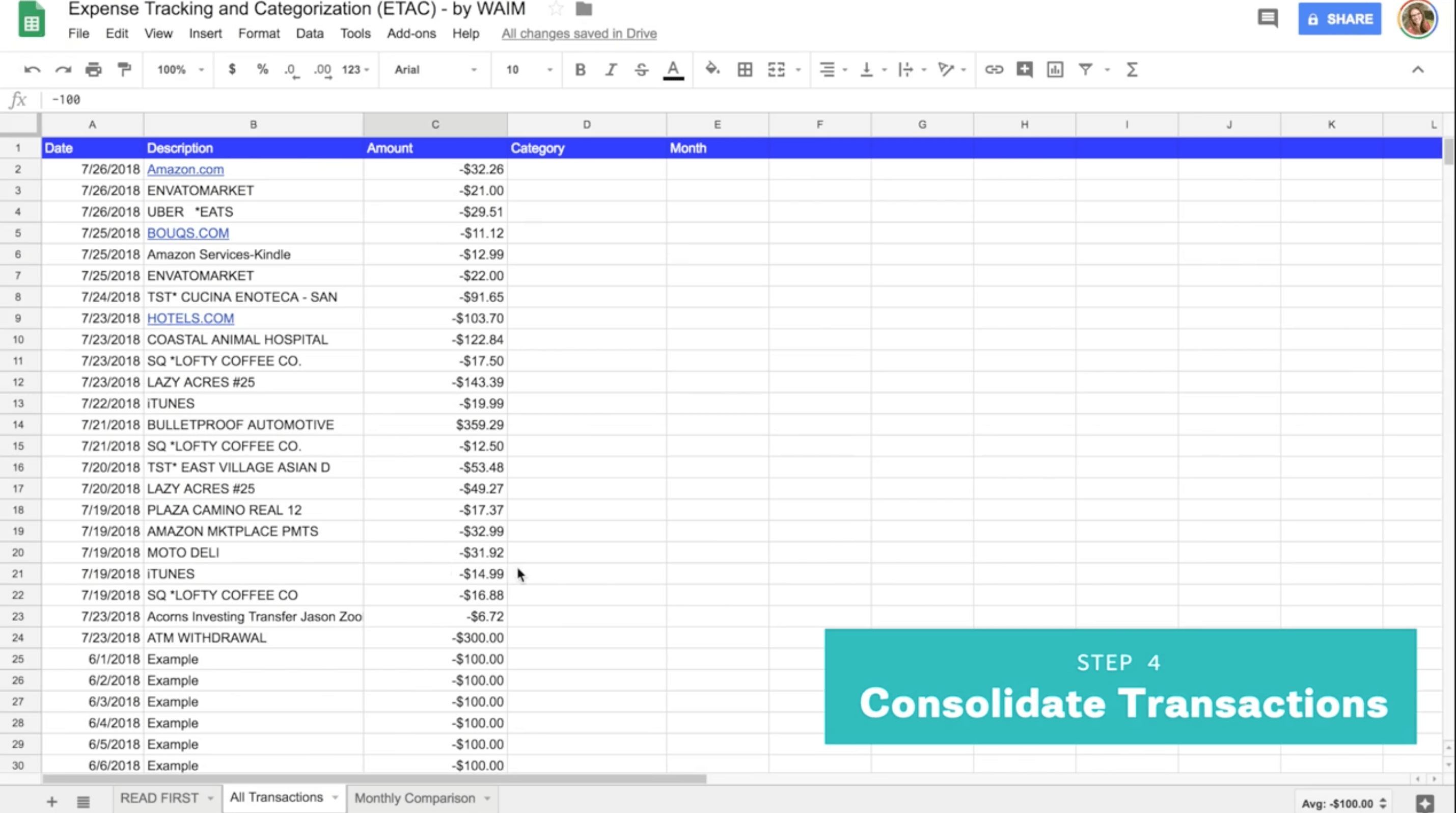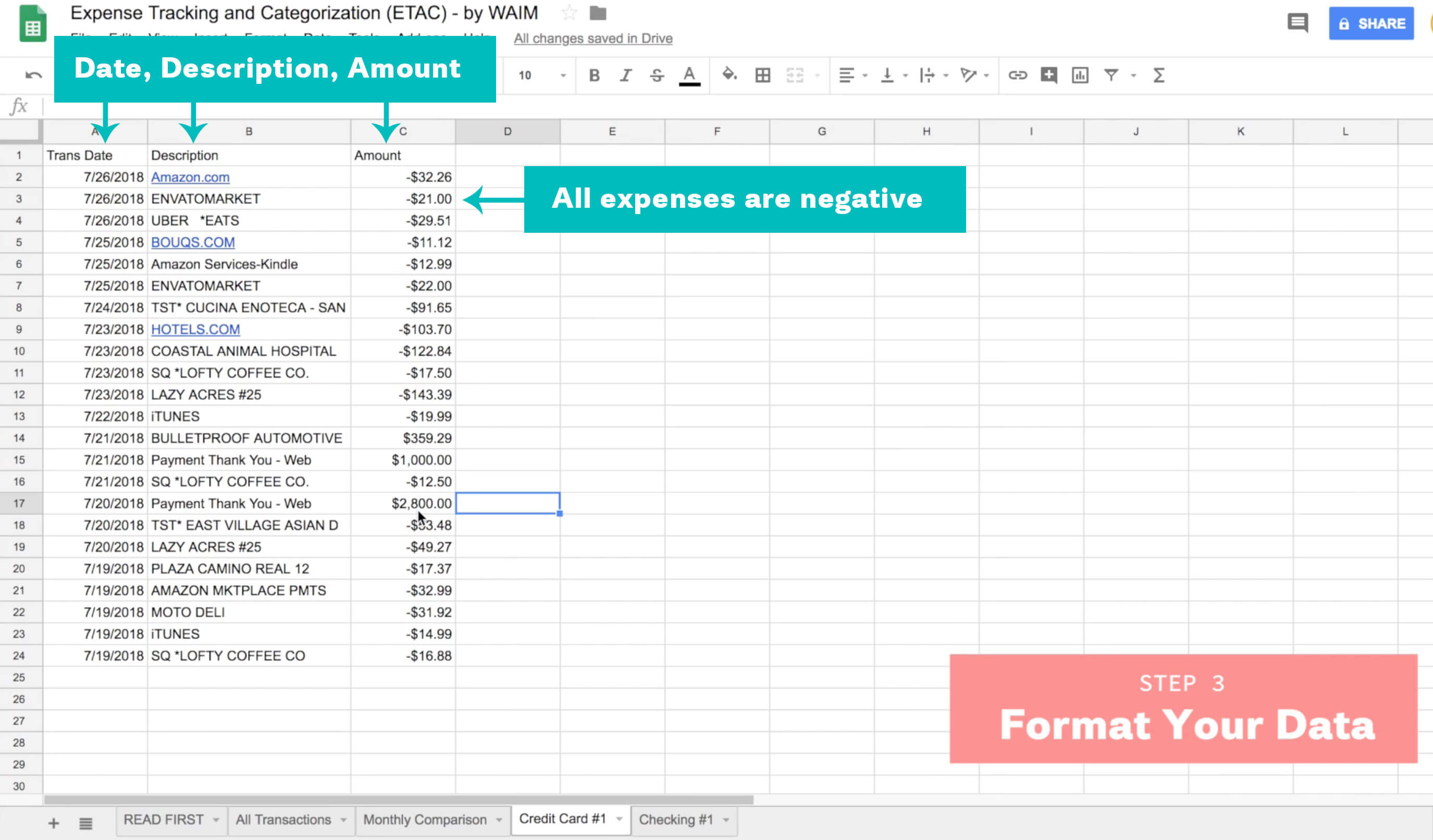 To do this, we’ll need the first three columns to be Date, Description, and Amount…in that order.