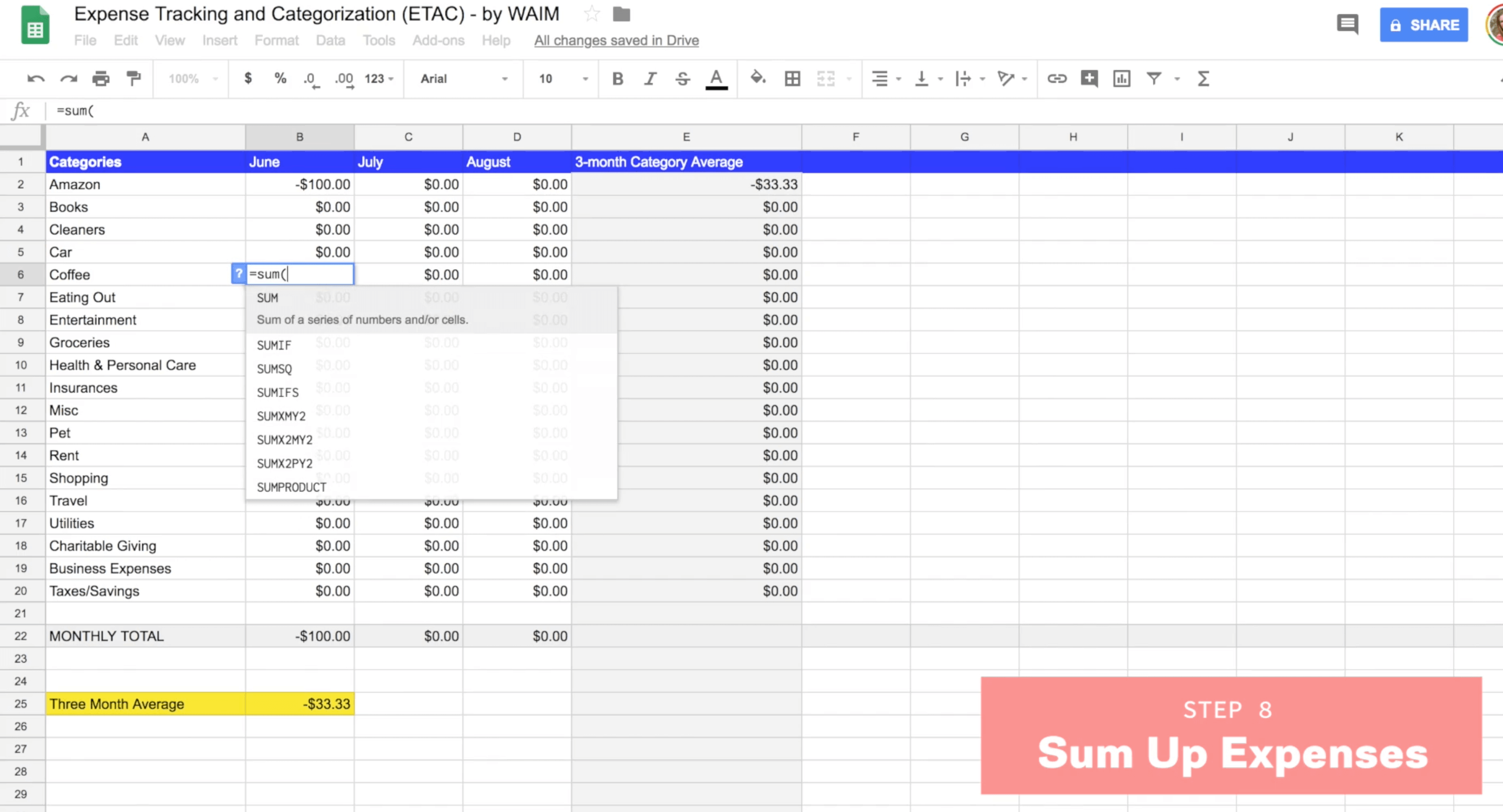 Once you’ve summed the subtotal for each product, you will likely also want to add up those subtotals to get your overall sales for the month