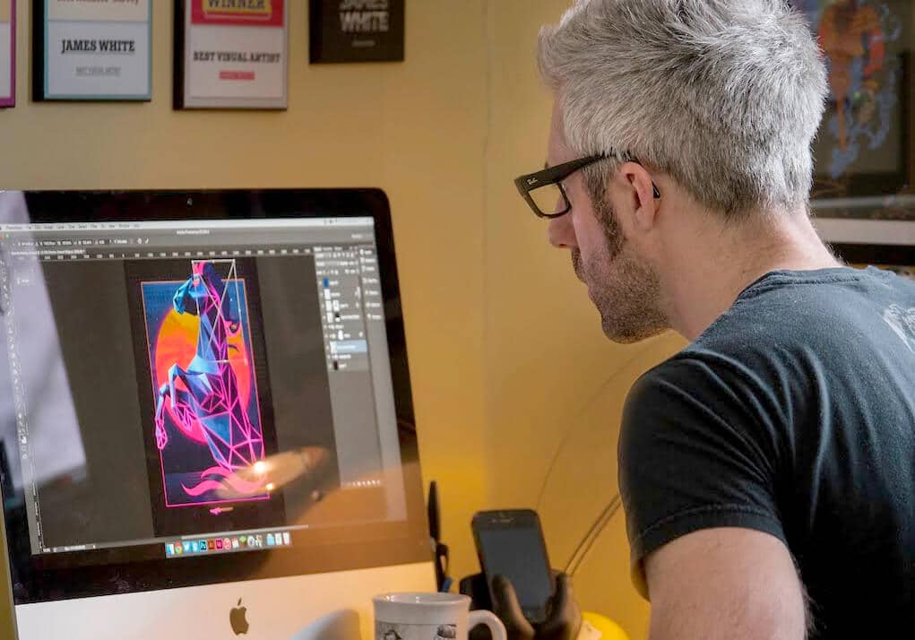 If you aren’t familiar with James, he runs a design and illustration studio called Signalnoise. James is best known for his “1980’s Metal Rock” design style, but his talent doesn’t stop there. He currently has a fantastically-awesome illustration series called StarKade that features professional wrestlers and other prominent characters from the 80’s. I’ve shared some of his work in the image above, but I highly recommend checking out Signalnoise.com and giving him a follow on Twitter or Instagram! You do NOT need to be a designer to enjoy this interview or James’ speaking presentation, trust me…